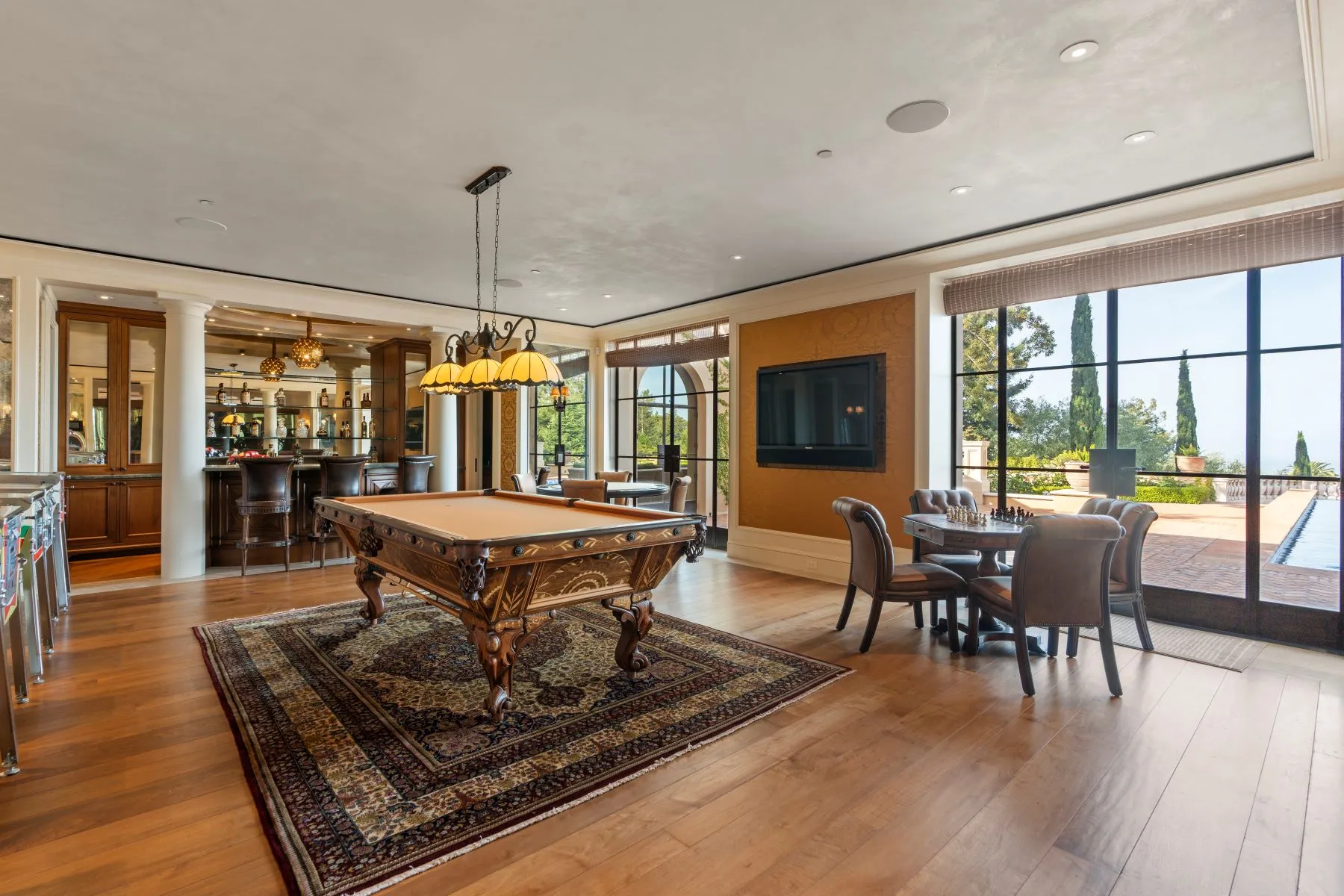 The Sports Pavilion includes a two-story sports lounge with an elevated viewing platform overlooking a sunken championship tennis court, pickleball court, volleyball court, badminton court, bocce ball court, horseshoe court, shuffleboard court and putting green. The estate also features an executive length golf course. Following its completion, Villa de Verano received the CLCA annual Grand Sweepstakes Award for best residential estate completed in the state of California.